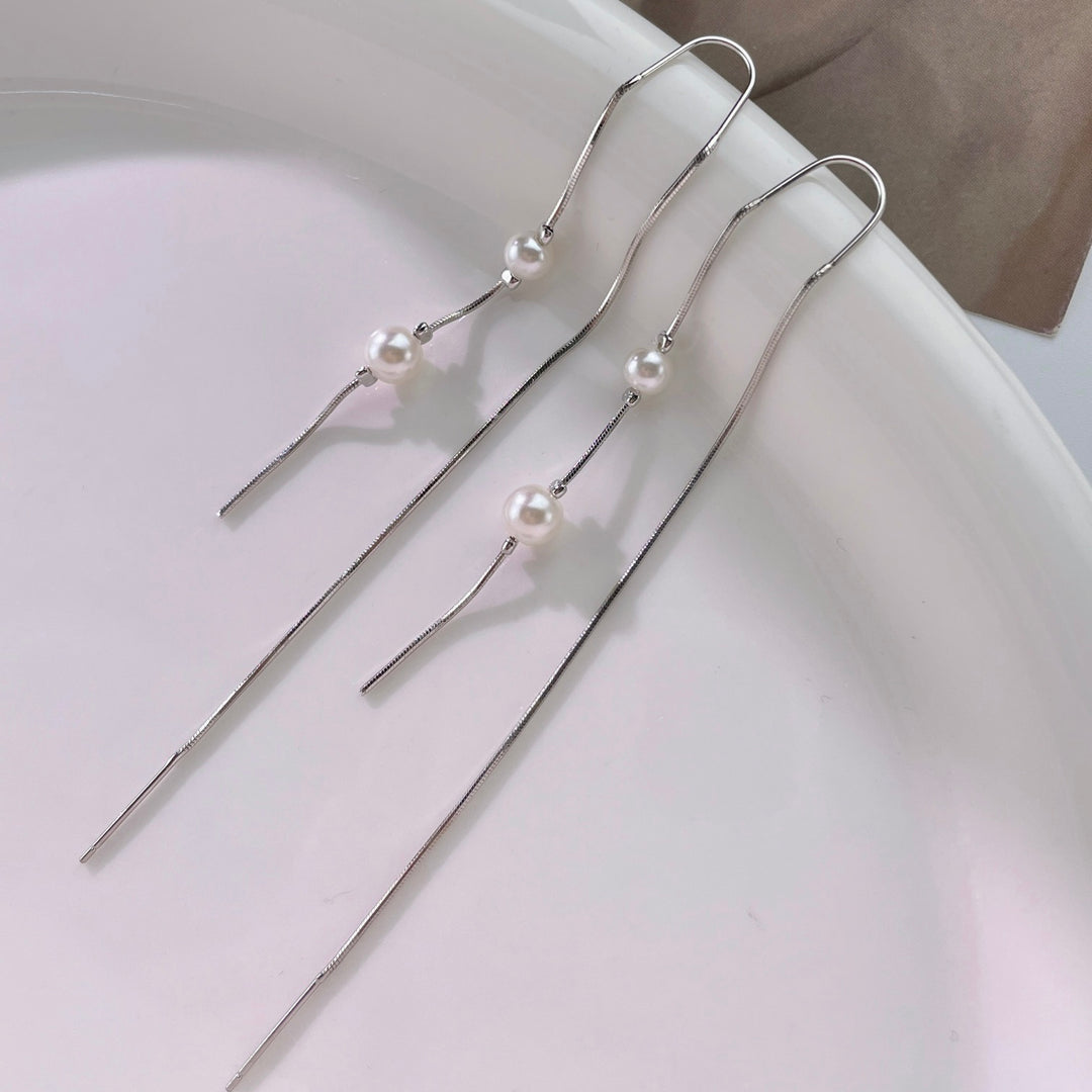 Linear Pearl Threader Earrings – Gold & Silver Drape Chain Design