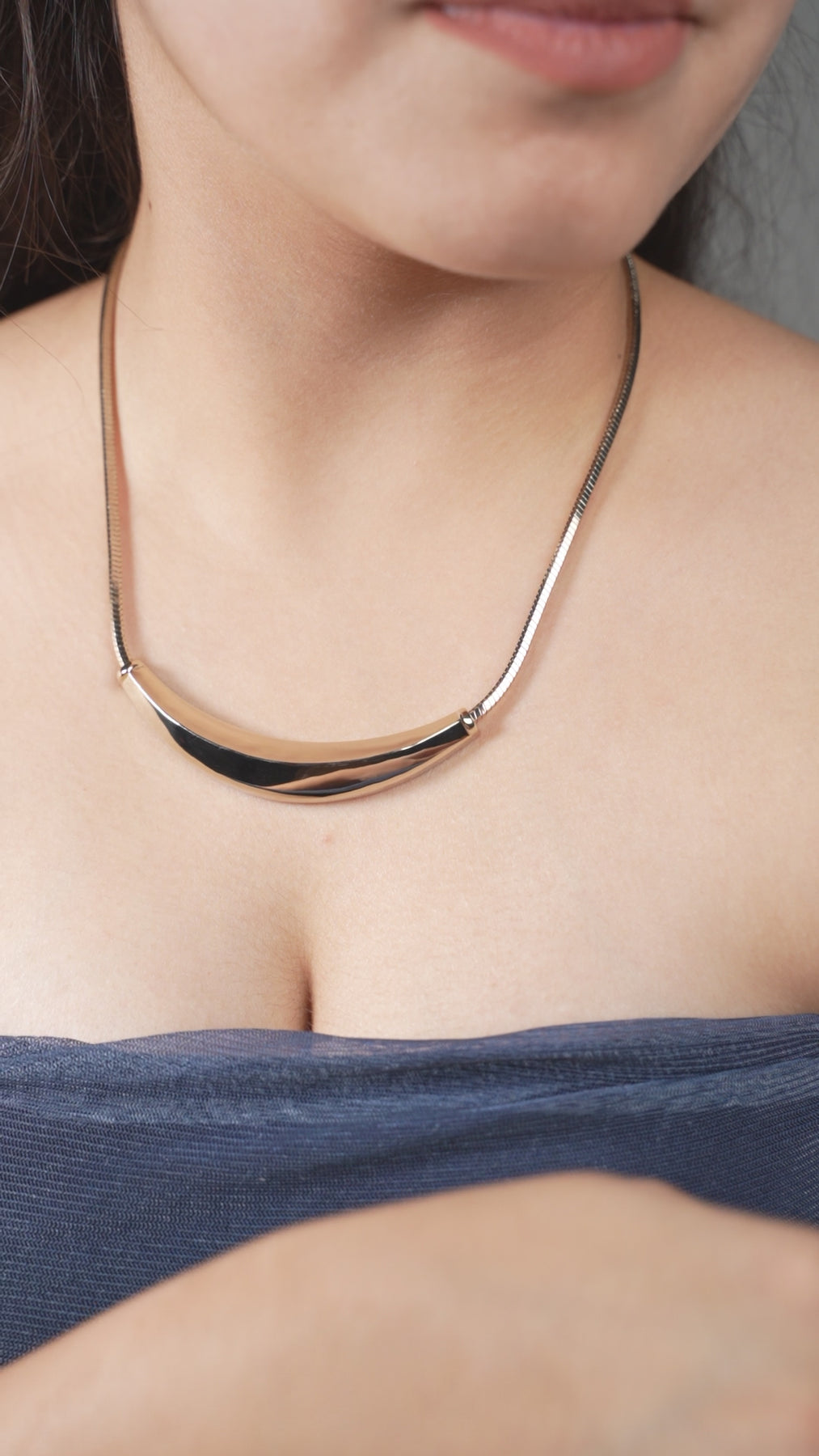 • Sleek Design: The curved centerpiece adds definition to your neckline.