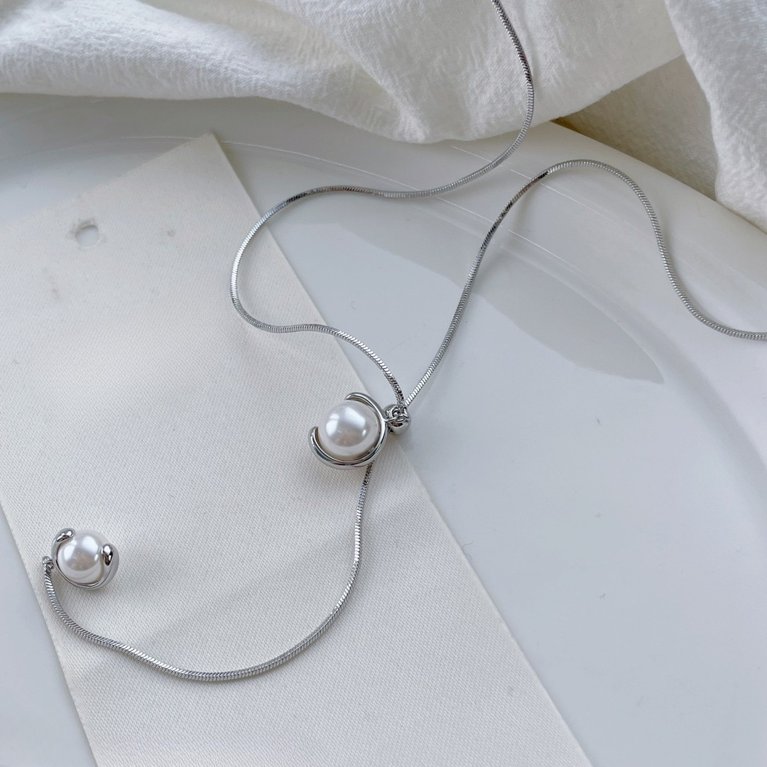 Modern Pearl U-Shaped Pendant Necklace
